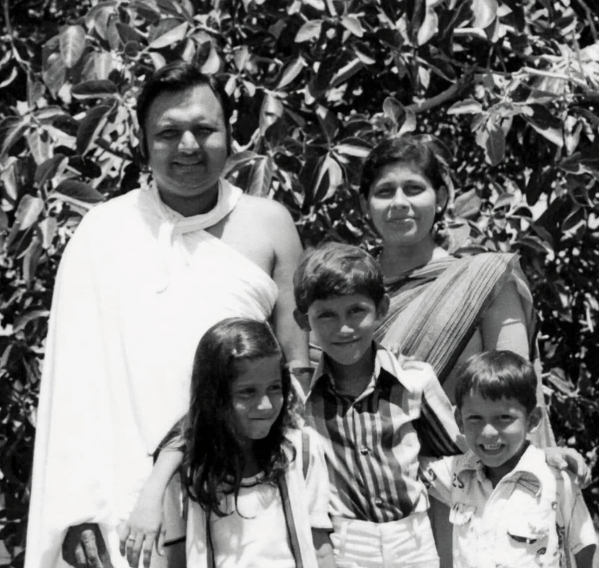 A father, a mother, their two children, and their Gurudev.